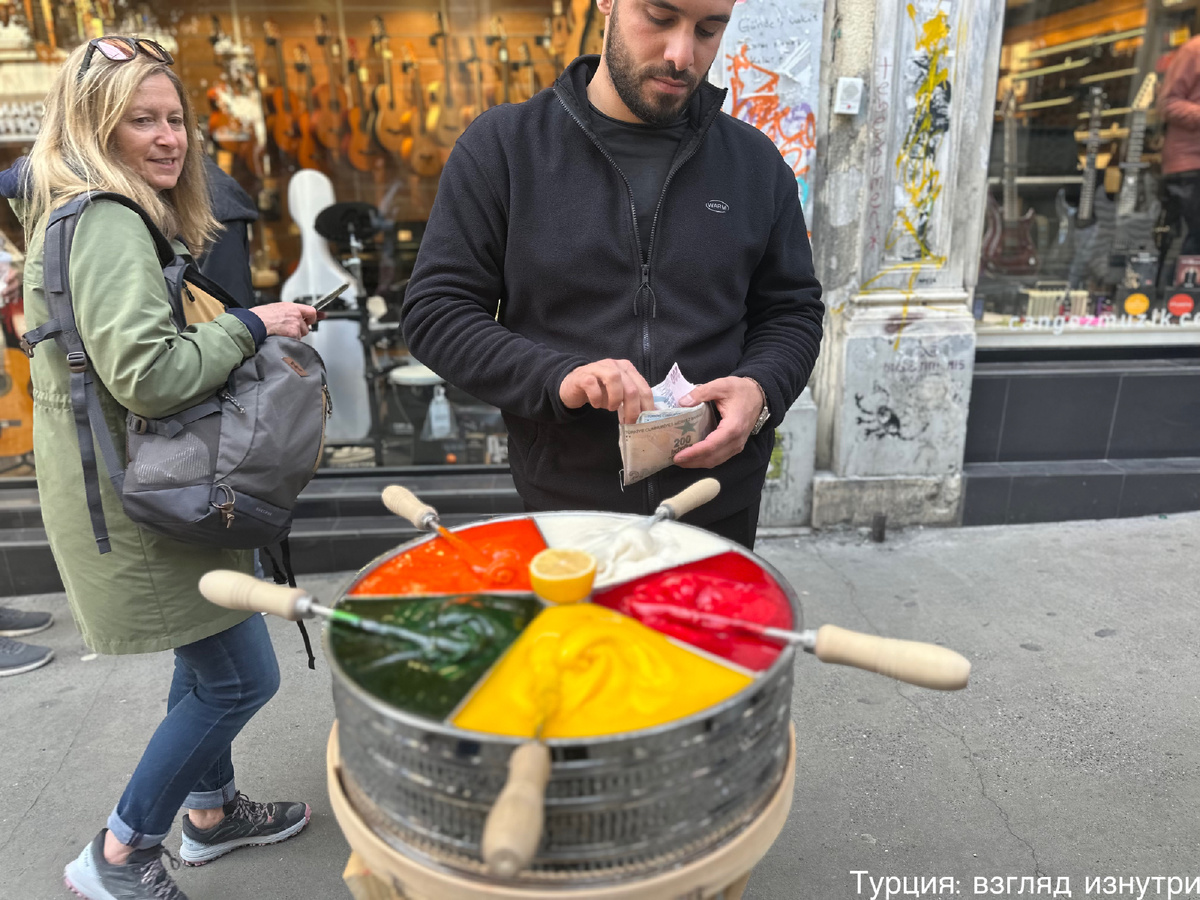 Прогуливаясь по туристическим улицам Стамбула, невозможно не заметить уличных продавцов с круглыми металлическими тазиками, разделёнными на секции, словно витраж. Они ловко наматывают на деревянную палочку разноцветную тягучую пасту: красную, жёлтую, зелёную, белую, оранжевую — создавая настоящую сладкую поделку. Мимо такого зрелища трудно пройти, не подойдя поближе.