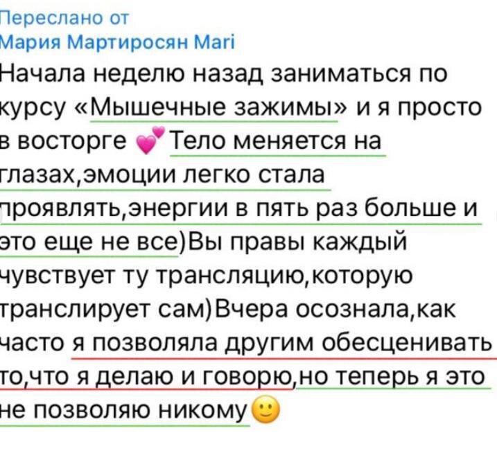 «Тело меняется на глазах, эмоции легко стала проявлять, энергии в 5 раз больше…» Через снятие зажимов вы 100% изменитесь в эмоциональной сфере: станете стабильнее и перестанете нервничать по пустякам. До встречи на курсе «Зажимы в теле»: https://kurs.tdt-dance.ru/myshechnyezazimi?utm_source=osnovnoi&utm_medium=tg&utm_campaign=apr25&utm_content=post&utm_term=&utm_group=