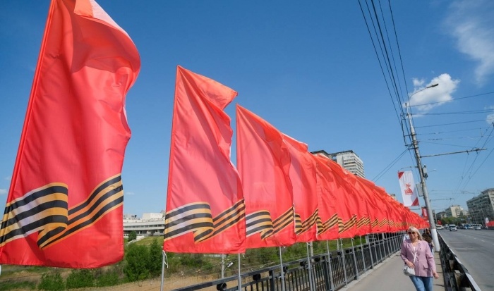 К 80-летию Победы в Великой Отечественной войне алые знамена появились на участке от пл. Чекистов до ост. «Современник». Аналогичные украшения горожане видели у собора Александра Невского, на Аллее Героев, а также на ул. 7-й Гвардейской возле памятника маршалу Константину Рокоссовскому.