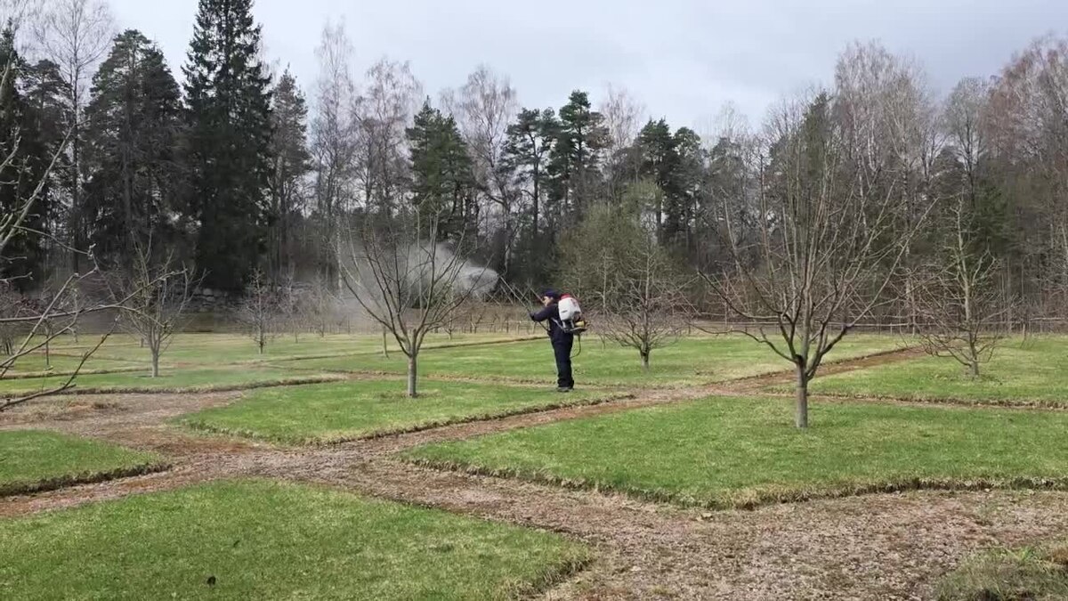 В парк Монрепо (Выборгский район Ленинградской области) пришла весна. В формовом плодовом саду распустились первые нежные листочки. Чтобы сохранить побеги, специалисты провели первую весеннюю обработку плодовых деревьев. Теперь раскрывающимся почкам не страшны клещи, яблоневая медяница, яблоневый цветоед и другие вредители. "Надеемся на богатый урожай в этом году!" - прокомментировали в в пресс-службе парка Монрепо. Отметим, уже в субботу, 26 апреля, территория Монрепо вновь станет доступна для посетителей. Парк открывается после весенней просушки дорожек.