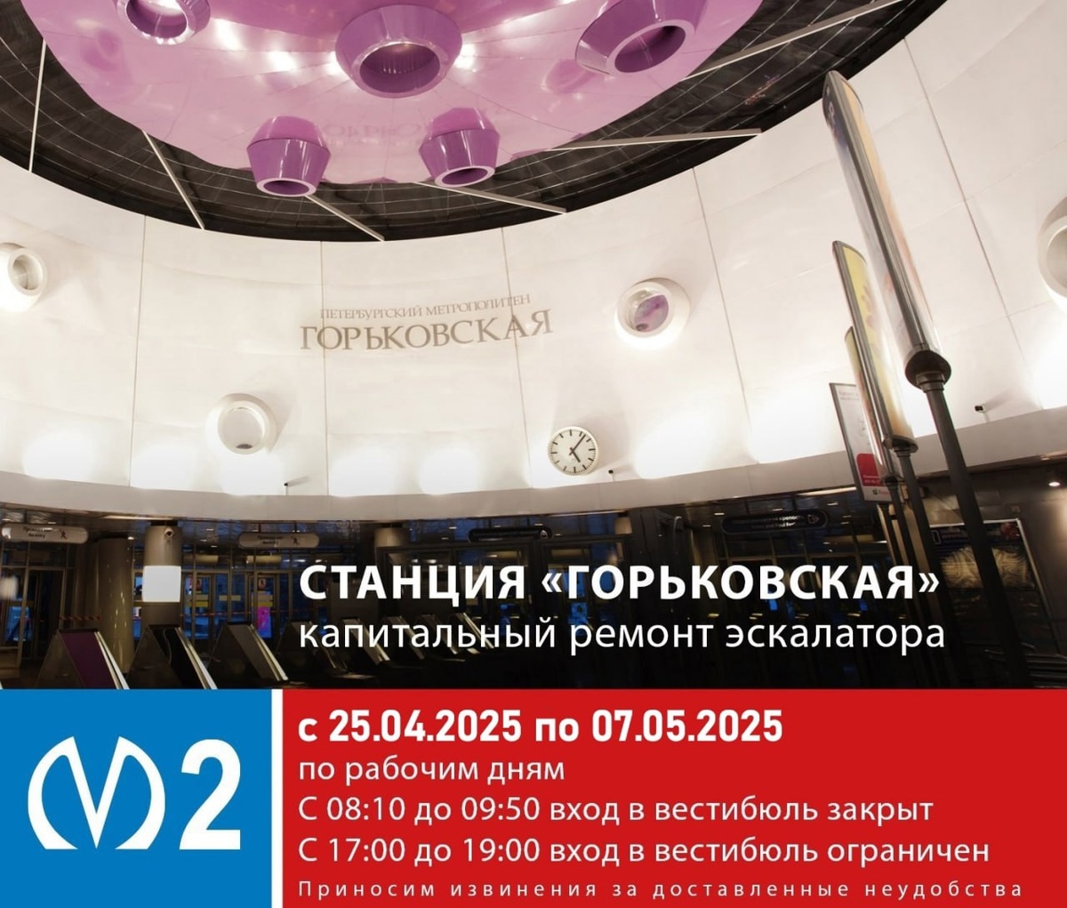 Капремонт эскалатора на станции метро «Горьковская» продлили до 7 мая.