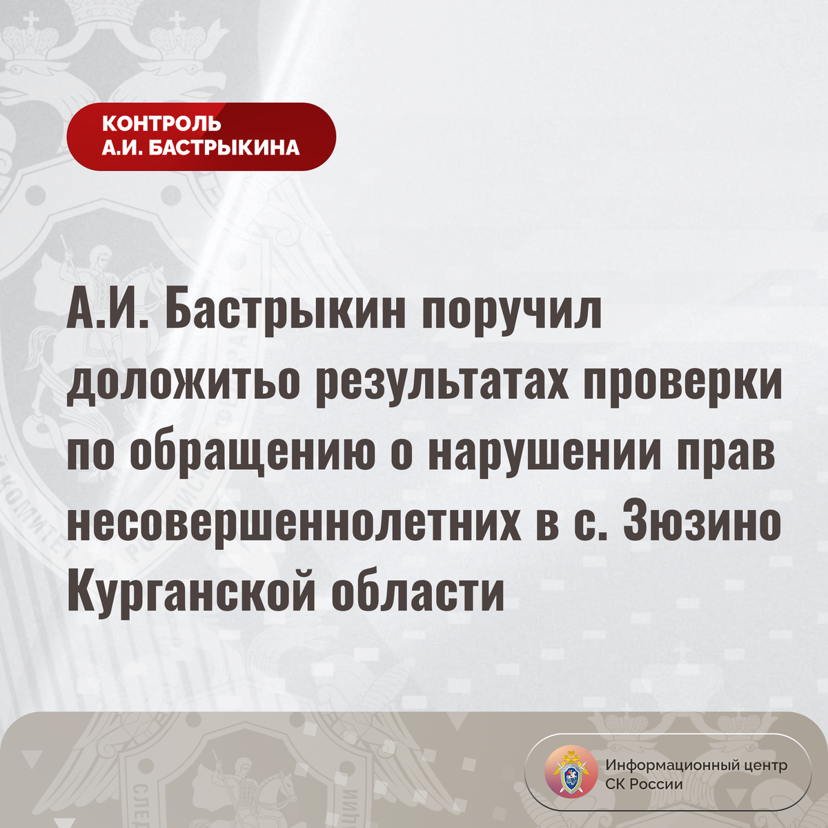 А.И. Бастрыкин поручил доложить о результатах проверки по обращению о нарушении прав несовершеннолетних в с. Зюзино Курганской области