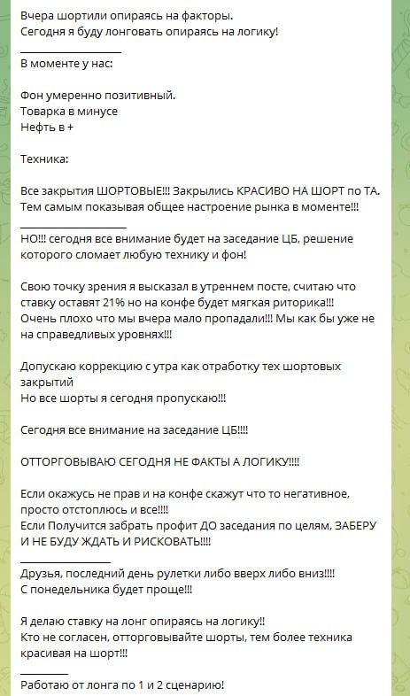 🆘В рамках обучения смотрим обзор. Это ежедневный обзор который выходит в закрытом ТГ канале ДО начала сессии.