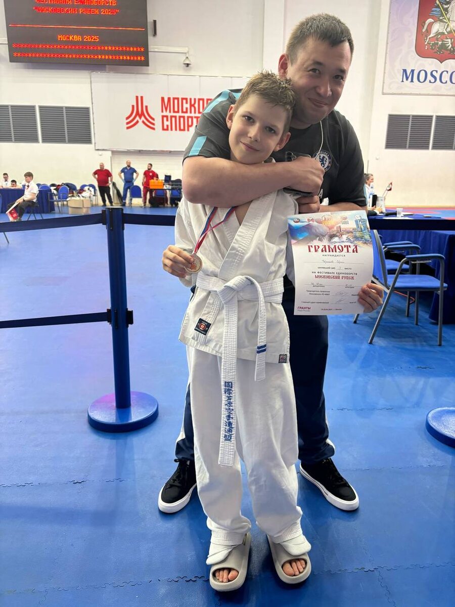 🥋20 апреля на арене Московского Центра Боевых Искусств завершился Турнир Москвы по всестилевому каратэ «Московский рубеж 2025». В нем приняли участие команды Москвы, Нарофоминска, Королева, Нахабино, Троицка, Твери, Тамбова, Астрахани, среди которых было разыграно 60 комплектов наград, а также и наши ученики! 🥳 Сергей, ученик 3 «К» класса, занял 2 призовое место в своей весовой категории. 🥳 Иван, ученик 7 «З» класса, проведя три очень тяжелых боя, в абсолютной весовой категории занял 3 место. Поздравляем ребят и желаем дальнейших успехов! #ДОНМ | #ТалантливыеДетиМосквы | #Школа1293| #ЗАО | #ШколаКунцево | #РайонКунцево