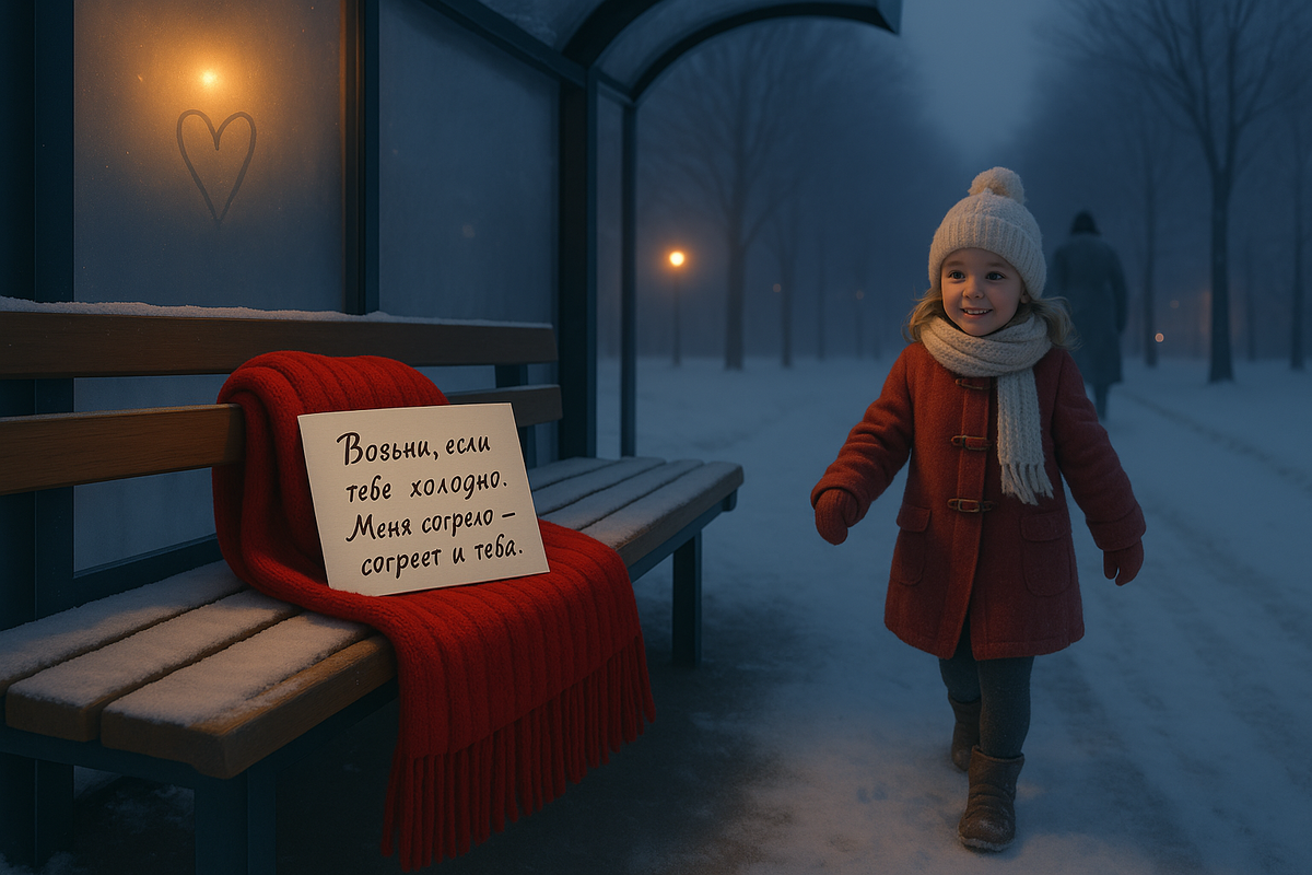 Иногда Наталья стояла у витрины булочной и наблюдала за остановкой. Видела, как подросток с синими руками разворачивал шарф. Как женщина с тяжёлыми сумками клала его в рюкзак, не снимая перчаток. Один раз — как мужчина лет пятидесяти, в старом пальто, долго смотрел на записку, прежде чем накинуть шарф на плечи.