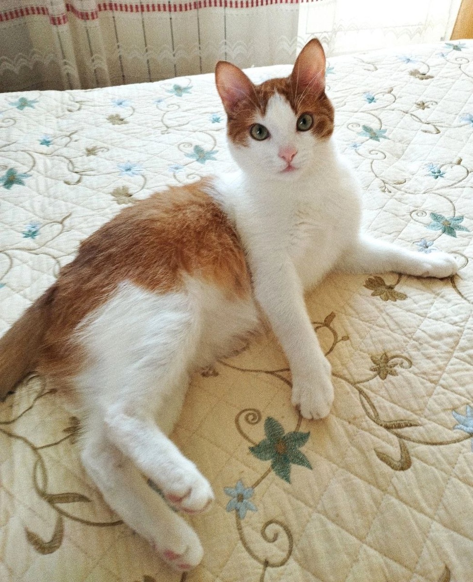 Абрикосу один год и несколько месяцев . Он котик компанейский, любит поиграть и побегать с друзьями, с такими же как он.