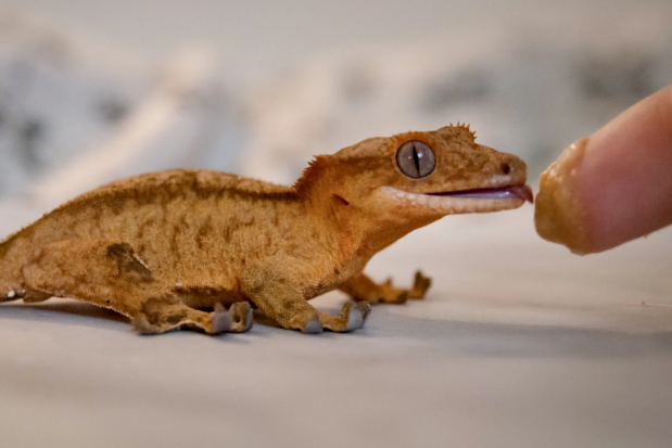 Молодых гекконов кормят через день, взрослых — 2–3 раза в неделю. В качестве лакомства допустимо предлагать гусениц бражников, зофобасов или личинок восковой моли, но не чаще одного раза в месяц. При каждом кормлении следует добавлять витаминно-минеральные добавки с кальцием и D3 для поддержания здоровья костей и нормальной линьки.