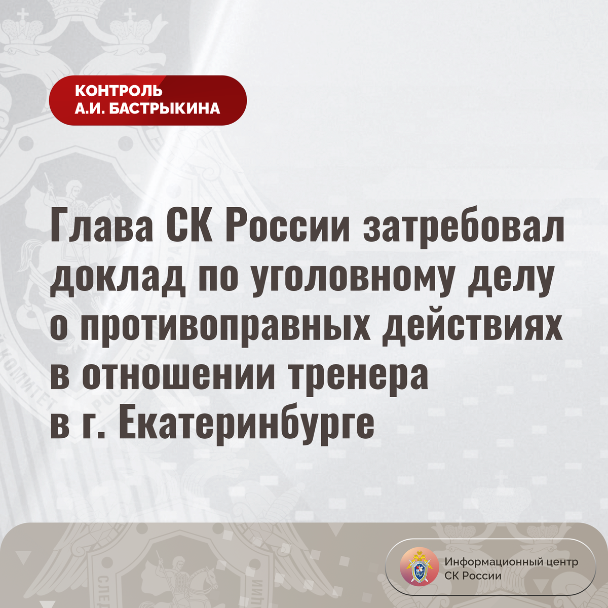 Глава СК России затребовал доклад по уголовному делу о противоправных действиях в отношении тренера в г. Екатеринбурге