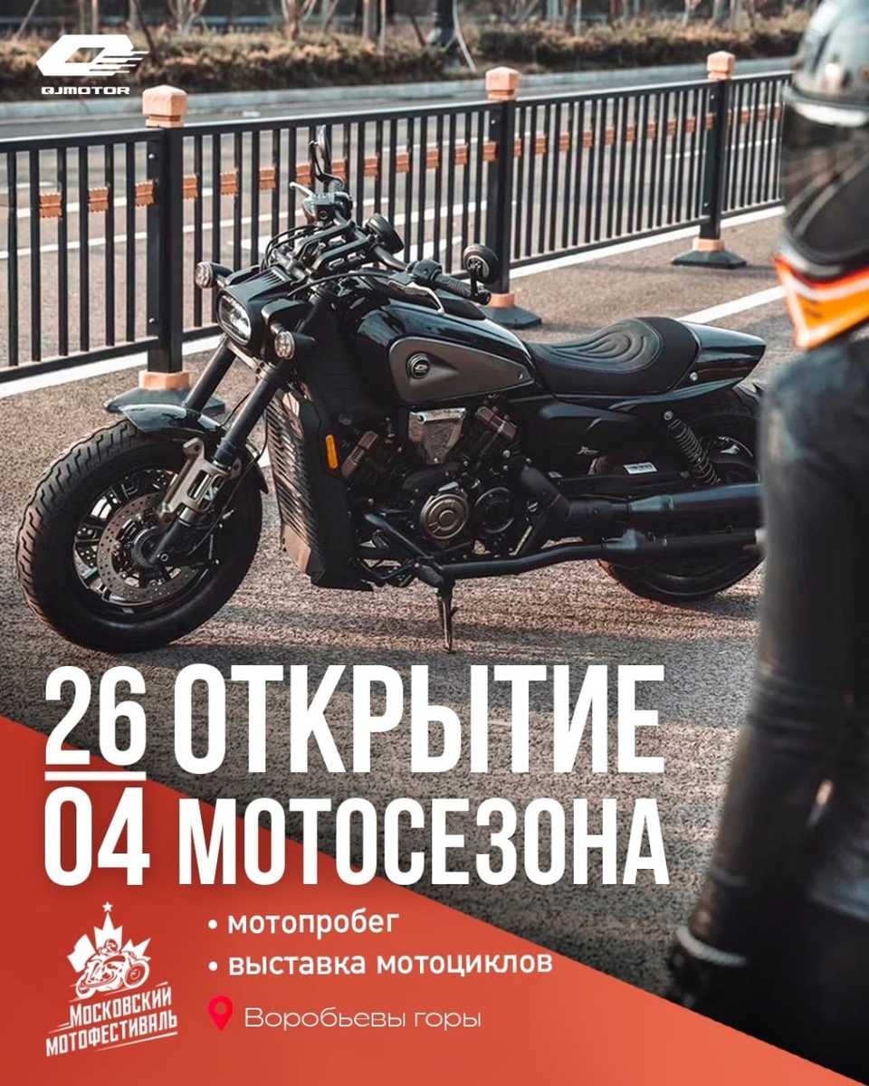 Городское открытие мотосезона 2025 в Москве! 🏍 26 апреля состоится одно из самых ожидаемых событий весны — 12-й Московский мотофестиваль! В этом году мы будем отмечать начало долгожданного времени года в окружении тысяч мотоциклов, включая уникальные раритеты из музея «Моторы войны». В 12:00 стартует грандиозный парад по Садовому кольцу — яркий символ начала нового мотосезона. Подготовьте свои мотоциклы и зарядитесь позитивом! На стенде QJMOTOR вы сможете увидеть новые модели 2025 года. Если вы не успели посетить выставки «Мотовесна» и IMIS, это отличная возможность узнать о новинках на городском мероприятии! Программа Московского мотофестиваля обещает быть насыщенной, и мы с нетерпением ждем вас, чтобы вместе грандиозно открыть мотосезон с QJMOTOR! 📅 Дата: 26 апреля 2025 года ⏱️ Время: Начало фестиваля в 10:00, старт мотопробега в 12:00, окончание мероприятия в 18:00 📍 Место: Смотровая площадка Воробьевых гор Вход свободный! До встречи на фестивале!