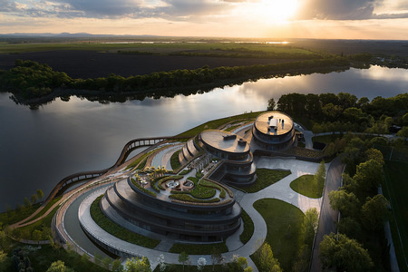 - Новое здание предназначено, прежде всего, для отдыха футболистов после напряженных матчей и тренировок, включает три корпуса: в одном гостиница, в другом спа и бани, в третьем - залы для тренировок. Все они в плане строго эллиптические, расставлены как расходящиеся в сторону воды лепестки – гостиница чуть поодаль и связана с остальными объемами лишь первым этажом, спа и спортивный корпус соединены стеклянной перемычкой. Кровля спортивного корпуса, как и перемычки, озелененная, эксплуатируемая. Каждый эллипс поднимается вверх террасами, этажи раскрыты панорамными виражами, объемы повернуты так, чтобы видеть больше красивых ландшафтов, - описывает проект издание.