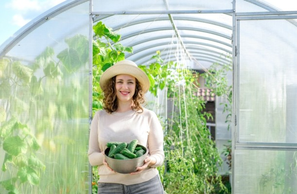 С другой стороны, размеры дачной теплицы не всегда позволяют посадить огурцы так просторно, как рекомендуют специалисты, так что приходится искать компромисс. Современные сорта огурцов бывают двух типов: кустовые и обычные, то есть плетистые. Кустовые огурцы имеют ограниченный потенциал роста, чаще всего достигают высоты около 70 см и слабо ветвятся. Чаще всего их выращивают в открытом грунте и пленочных укрытиях, но есть специальные сорта и для теплиц. Благодаря компактности высаживать эти огурцы можно довольно плотно, на расстоянии 30 см друг от друга и 40-50 см между рядами. Плетистые огурцы чаще всего растут мощно и формируют длинные побеги. Их иногда выращивают «в расстил», когда плети лежат на земле, но для теплицы такой способ не подходит, потому что каждое растение занимает очень много места. К тому же соприкосновение с грунтом очень сильно повышает риск грибных болезней, так как возбудители часто обитают в почве. Так что лучший способ выращивания таких огурцов в теплице — верт