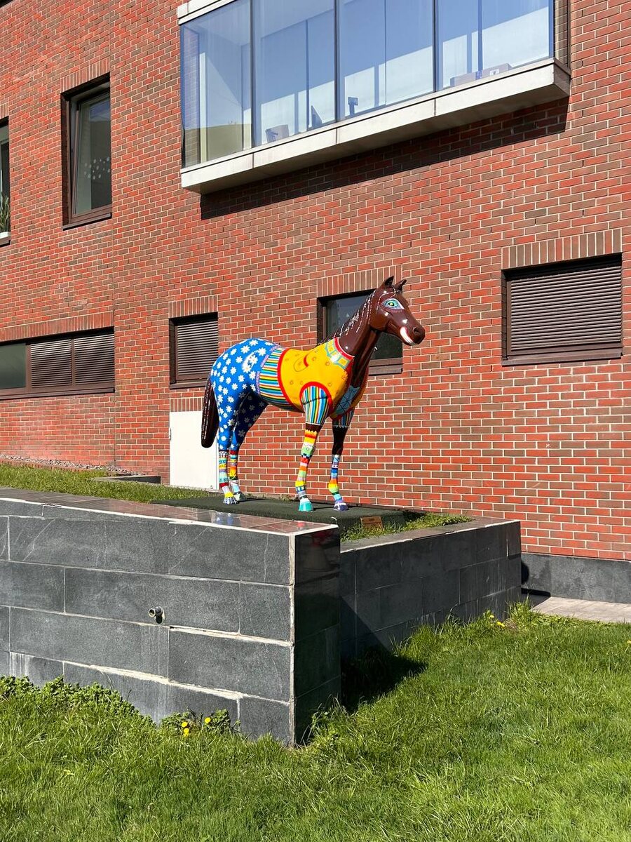 В прошлый раз была в Москве, наши лошади были на реставрации. Вернулись отдохнувшими и снова яркими! Обожаю эту историю, в Яндексе её все знают, знайте и вы, что за лошадки такие. Выдержка из нашей Вики, заботливо собранной редакцией. Расписные лошади живут с нами очень давно — ещё в 2004 году основатели Яндекса Илья Сегалович и Аркадий Волож выкупили их на благотворительном аукционе. Разрисовывали коней юные художники из центра детей-сирот «Дети Марии», который организовали Илья и его жена — художница Мария Елисеева. Сперва лошадки стояли в первом офисе Яндекса на Самокатной, а теперь — во дворе «Красной Розы». Лошади с именами Клоун и Вечерняя Москва (да, у них есть имена!) быстро стали местными легендами: для них сшили пальто, укутывают зимой шарфиками, рисуют их на постерах и делают стикеры. А после особо весёлых вечеринок кто-то даже пытался оседлать наших лошадей (не пытайтесь повторить, правда). Так что не удивляйтесь, когда зимой на Льва Толстого вас встретит буквально конь