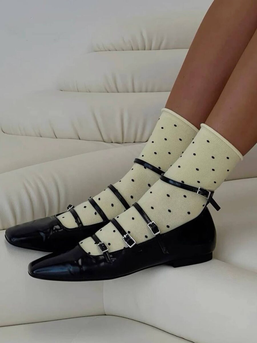 То, что туфли и босоножки в этом сезоне можно смело носить с носками, мы уже поняли. Теперь переходим к экспериментам. Чтобы образ выглядел стильно, просто замените привычную белую пару на акцентную: например, яркого цвета или с трендовым принтом. Grazia