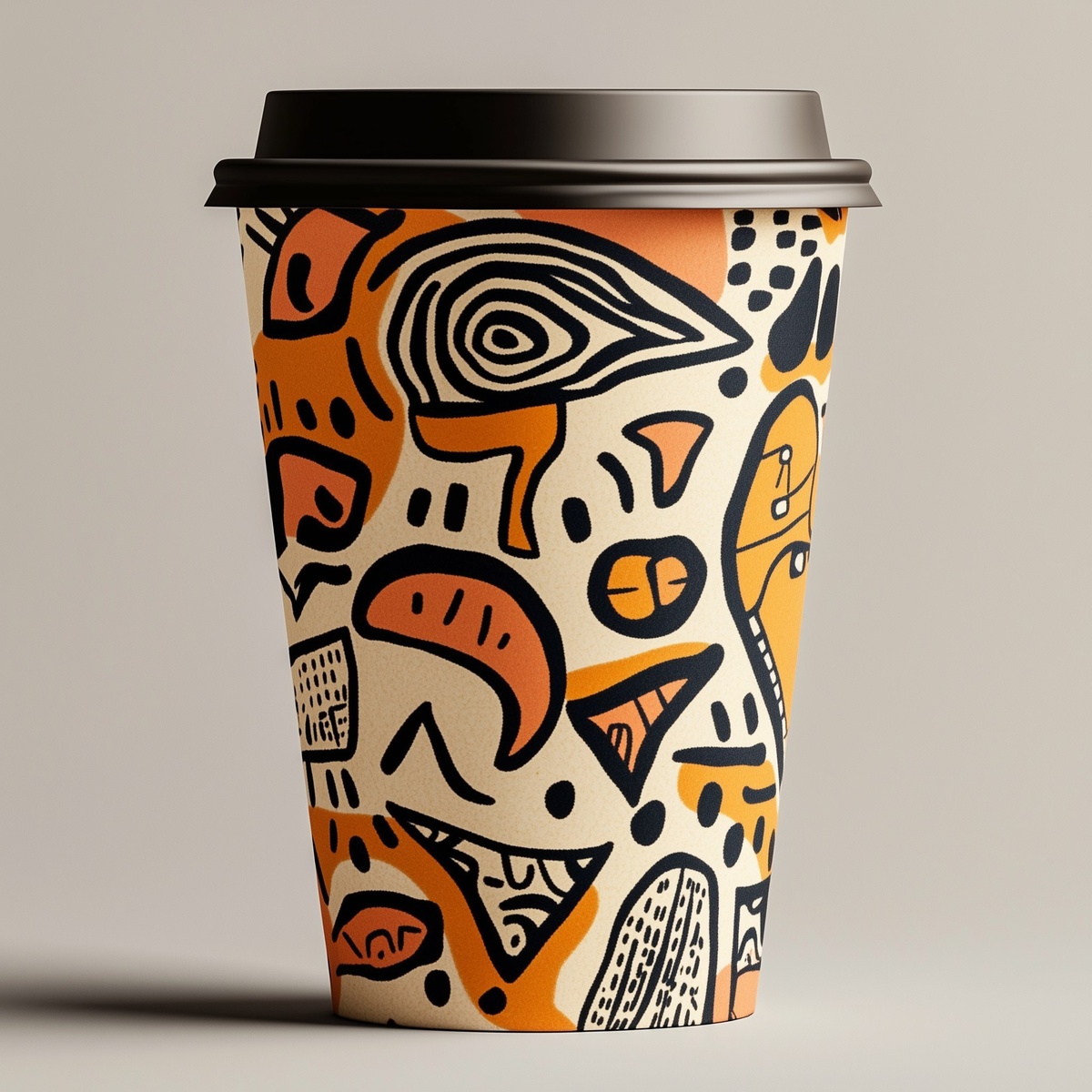 Создано на основе запроса: a paper cup branding with illustration pattern design, earthy, black, while amd peach colors