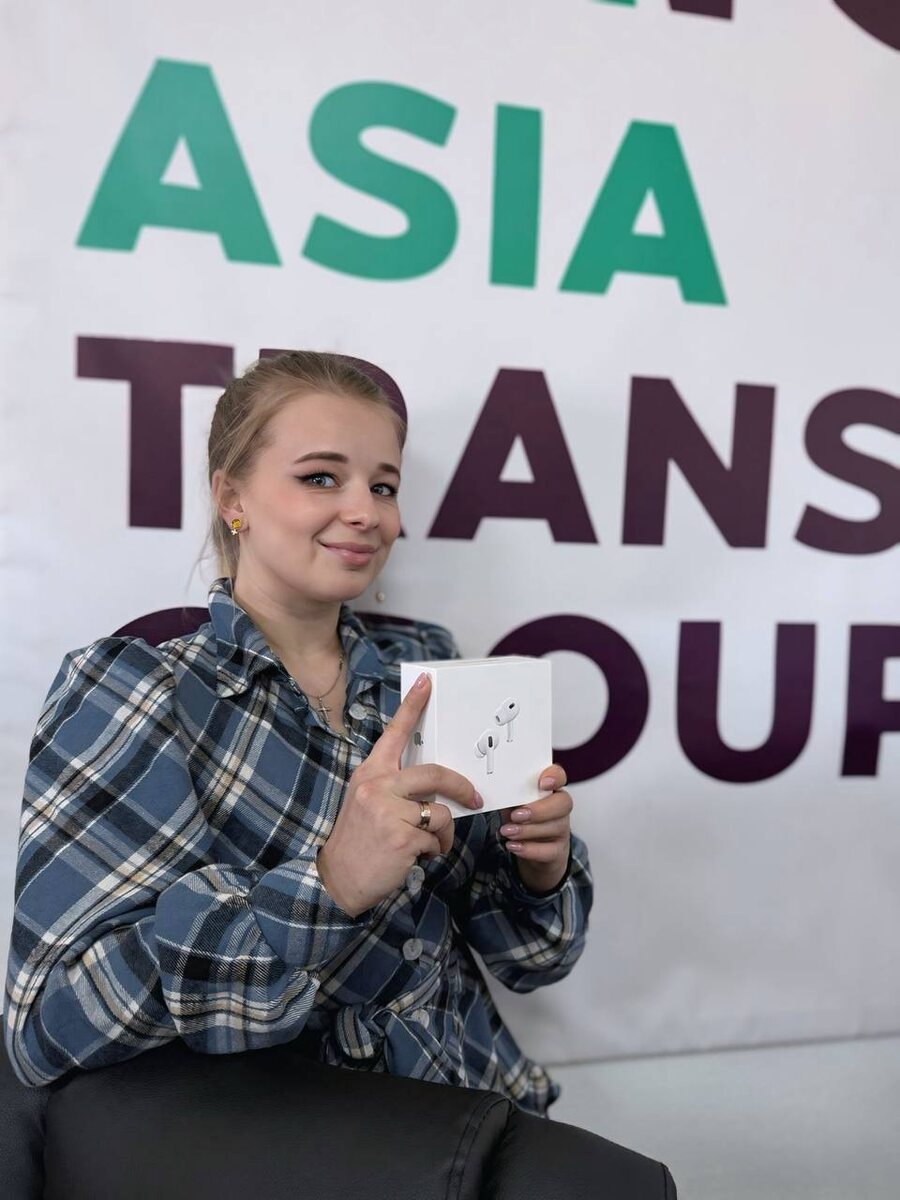 Внутренний конкурс среди менеджеров Asia Transit Group подошёл к финалу! ⚡️ Мы дали задание нашим менеджерам получить максимальное количество видео-отзывов от клиентов 🤫 🏆 Победителем стала Любовь, ещё раз поздравляем! На видео — момент вручения заслуженного приза — новых наушников AirPods Стараемся мотивировать своих сотрудников, ведь мы уверены: успех каждого сотрудника — это шаг к общему росту и совершенствованию всей компании! 🙌🏻