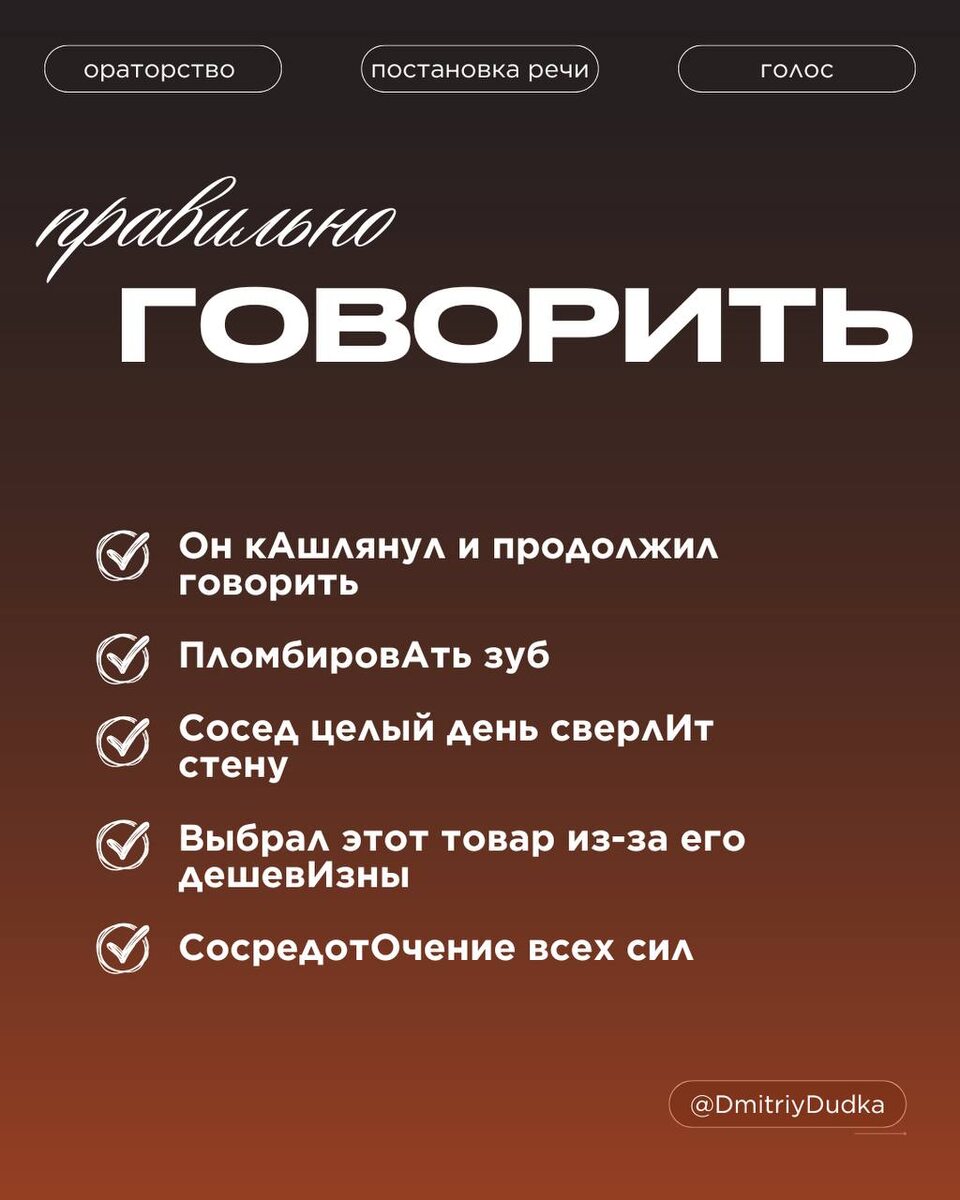 Говорим правильно — звучим профессионально! Речь — это наша визитная карточка. Говоря правильно, мы звучим увереннее, производим впечатление образованного, внимательного к деталям человека. А это значит — вызываем доверие. Вот вам пример правильного ударения — смотрите карточку и сохраняйте👆🏻