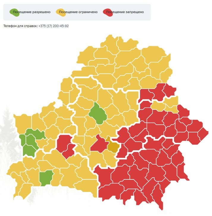 Только в 6 районах Беларуси разрешено посещение лесов