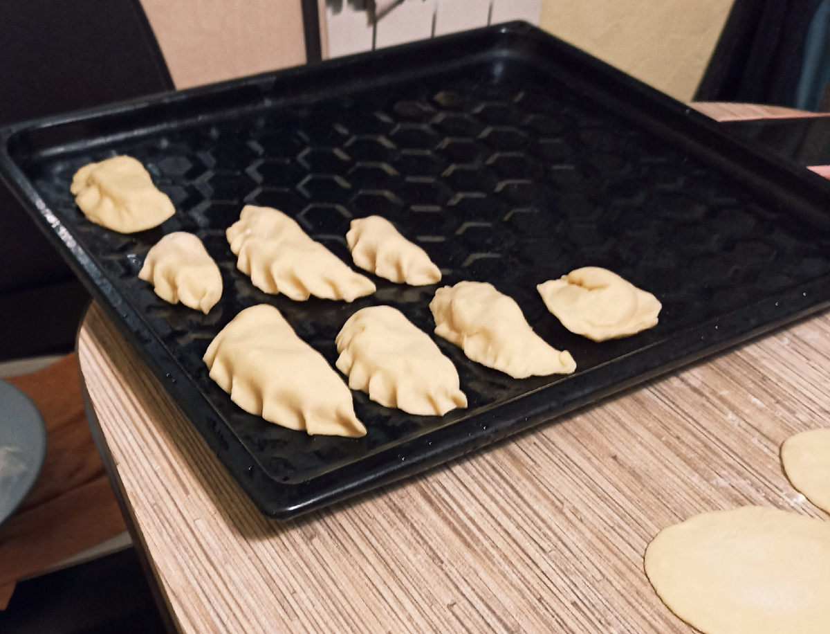 В предыдущей статье я выкладывала рецепт идеального теста для вареников. Но Вы можете попробовать купить готовое тесто, если не хотите заморачиваться как я 🤭 Начинка: - 500 г картофеля (отварить, размять в пюре) - 1 небольшая луковица (мелко нарезать, обжарить до золотистости) - Пучок укропа (мелко порубить) - Соль, перец – по вкусу Смешать пюре с луком, укропом, приправить. Можно добавить кусочек сливочного масла для нежности. Лепка вареников: 1. Раскатываем тесто в пласт толщиной 2–3 мм. (я делаю "колбаску" и делю на мелкие части, из которых скалкой формирую круг) 2. Стаканом вырезаем кружки. 3. Кладём начинку (1–1,5 ч. л.), складываем пополам, защипываем края. Можно слепить «косичку» для надёжности. 4. Чтобы вареники не слипались при заморозке, раскладываем их на доске, присыпанной мукой, и отправляем в морозилку на 1–2 часа. 5. Пересыпаем в пакет или контейнер – теперь можно хранить и варить порциями! Варка (прямо из морозилки!): - Кипятим подсоленную воду.