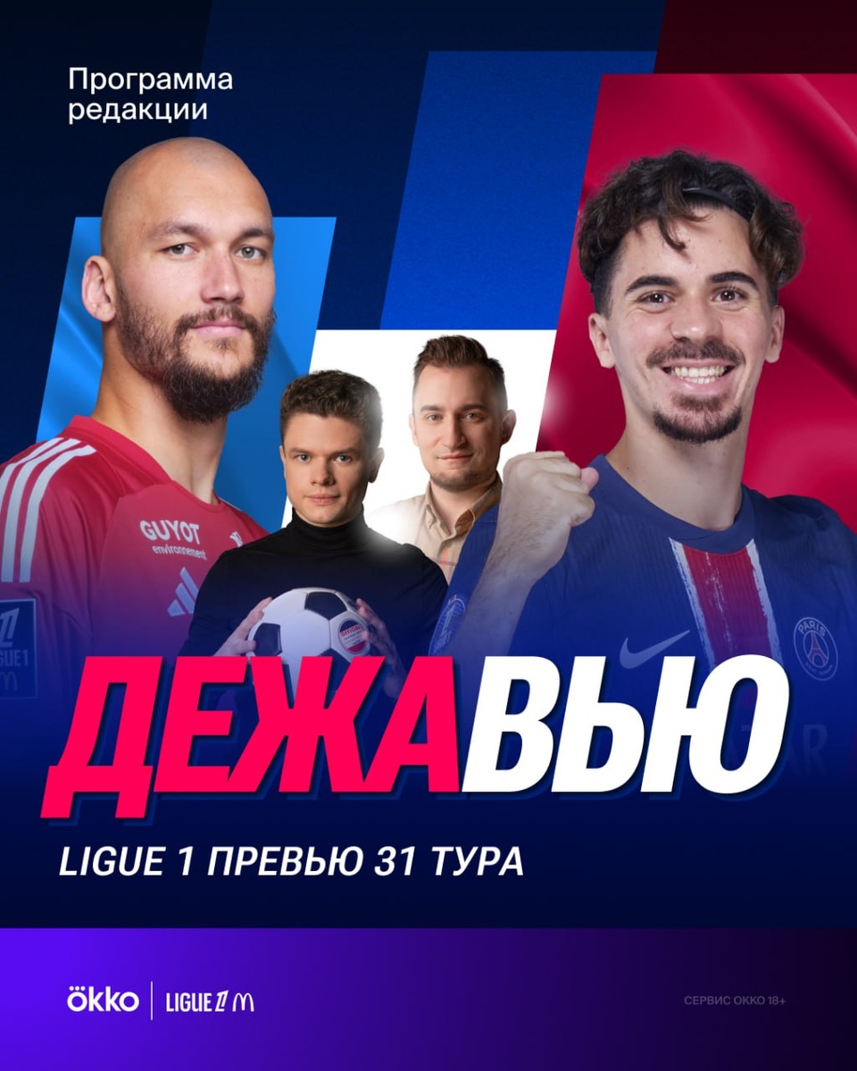 Новый выпуск программы «ДежаВью» приурочен к центральному матчу 31-го тура «ПСЖ» – «Ницца», но, как всегда, не исчерпывается одним событием 😎 Артём Борисов и Александр Еремиев подготовят вас ко всем играм предстоящих выходных и составят неочевидный топ-лист игроков нынешнего французского сезона. Включай в 20:45 в сервисе Okko, на YouTube или в VK Видео 🙌🏻