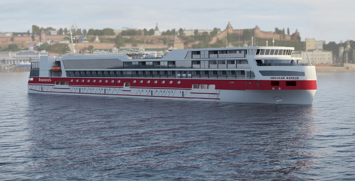 График строительства пересмотрели из-за необходимости внесения изменений в проект судна. Они связаны с трудностями при поставках судового комплектующего оборудования из-за санкционных ограничений. Изображение: «ВодоходЪ». По информации от представителей ОСК, на текущий момент все необходимое оборудование закуплено, строительство заказа продолжается согласно обновленному графику с учетом резерва времени, необходимого на пуско-наладочные работы нового оборудования, сообщили в компании «ВодоходЪ». Именно она является заказчиком судна. Спуск на воду теплохода «Николай Жарков» запланирован на 11 июня 2025 года. «ВодоходЪ» забрал на свою сторону выполнение части производственных задач, в том числе и работы по отделке внутренних интерьеров теплохода, что может дать уверенность в соблюдении сроков окончания строительства. В связи с корректировкой сроков ввода корабля в эксплуатацию в 2025 году его коммерческие рейсы не состоятся, график движения теплохода на 2026 год находится в процессе форми