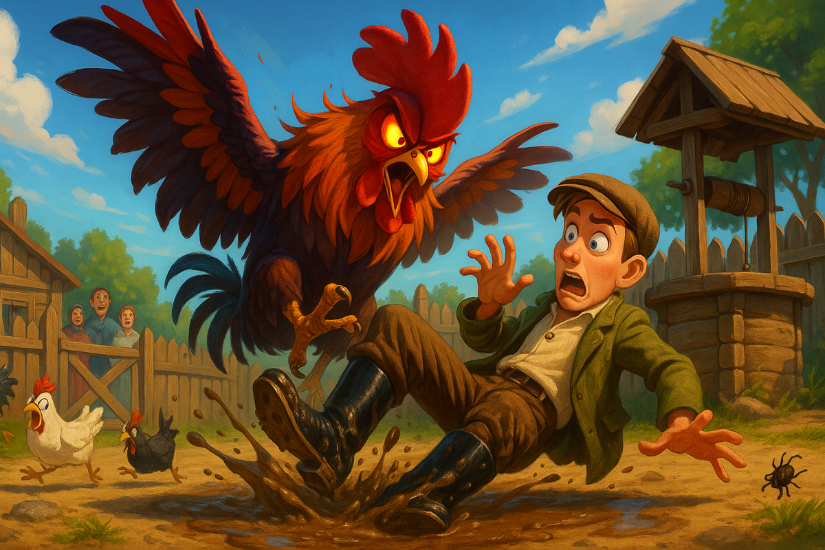 Ой, милаи мои, сядьте рядком да послушайте байку-то старую, из жисти моей давнишней! Дело-то было, когда маменька моя ещё в школу бегала, годочков эдак в пятидесятых, опосля войны-то. А был у них старшой братец — Ванюшка. Жили они в деревеньке нашей, в оренбургских краях, да держали они на подворье петуха — Петькой кликали. Ох, и лютый был тот петух — чистый разбойник! Забияка, драчун, горлопан — чуть свет начнёт кукарекать, так вся деревня на ноги! Хоть святых выноси! Страсть как его боялись, не токмо петухи соседские, а и люди! По двору-то не пройдёшь — враз налетит, как коршун, да клювом-то как долбанёт! Ближе пяти шагов к нему и не суйся! И своих, и чужих метелил почём зря. Соседи его, окаянного, не любили, да терпели, и убёгамши от него, всё хозяевам приговаривали: «Ядрёный у вас петух, ох, ядрёный!» Что там соседи, деревенски собаки его за вёрсту обходили! А ежели забредёт какая приблудная, не знамши, что Петька-то у нас — огонь, так беда! Как углядит Петька чужака, глазищи кровь