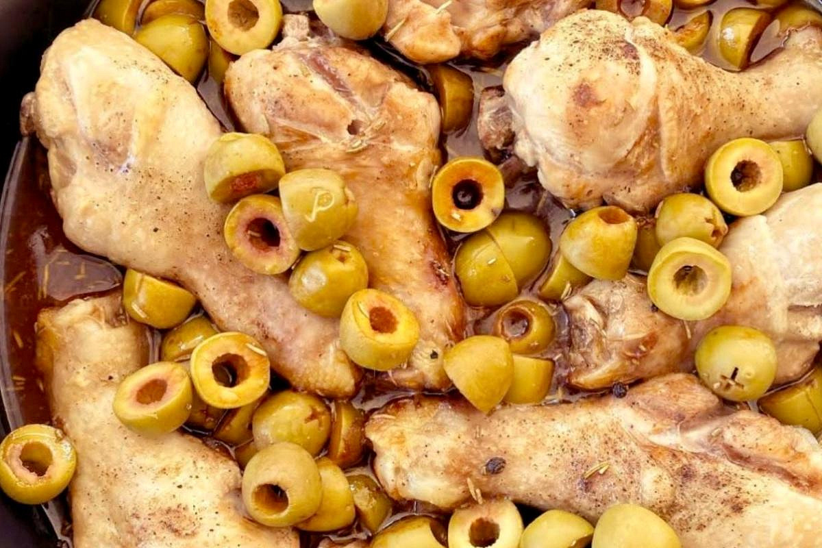 рецепт — ода вкусу и аромату. Курица, пропитанная винным маринадом, обретает глубину вкуса, а оливки, розмарин и томатная паста превращают