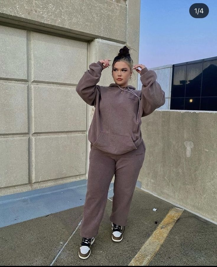 Объемный и рыхлый материал, который не держит форму, визуально увеличивает фигуру. Как мне кажется, этот небрежный образ неуместен нигде, кроме спортзала. Да и для тренировок можно одеться гораздо интереснее. А вот если разбить костюм и носить худи и джоггеры отдельно, ситуация исправится.