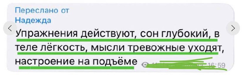«Упражнения действуют: сон глубокий, в теле легкость, мысли тревожные уходят, настроение на подъеме