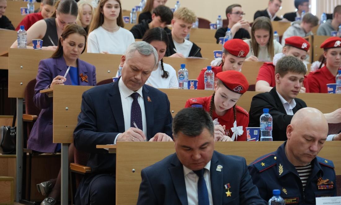 Губернатор Травников вместе с участниками проекта «Герои НовоСибири» написал «Диктант Победы»
