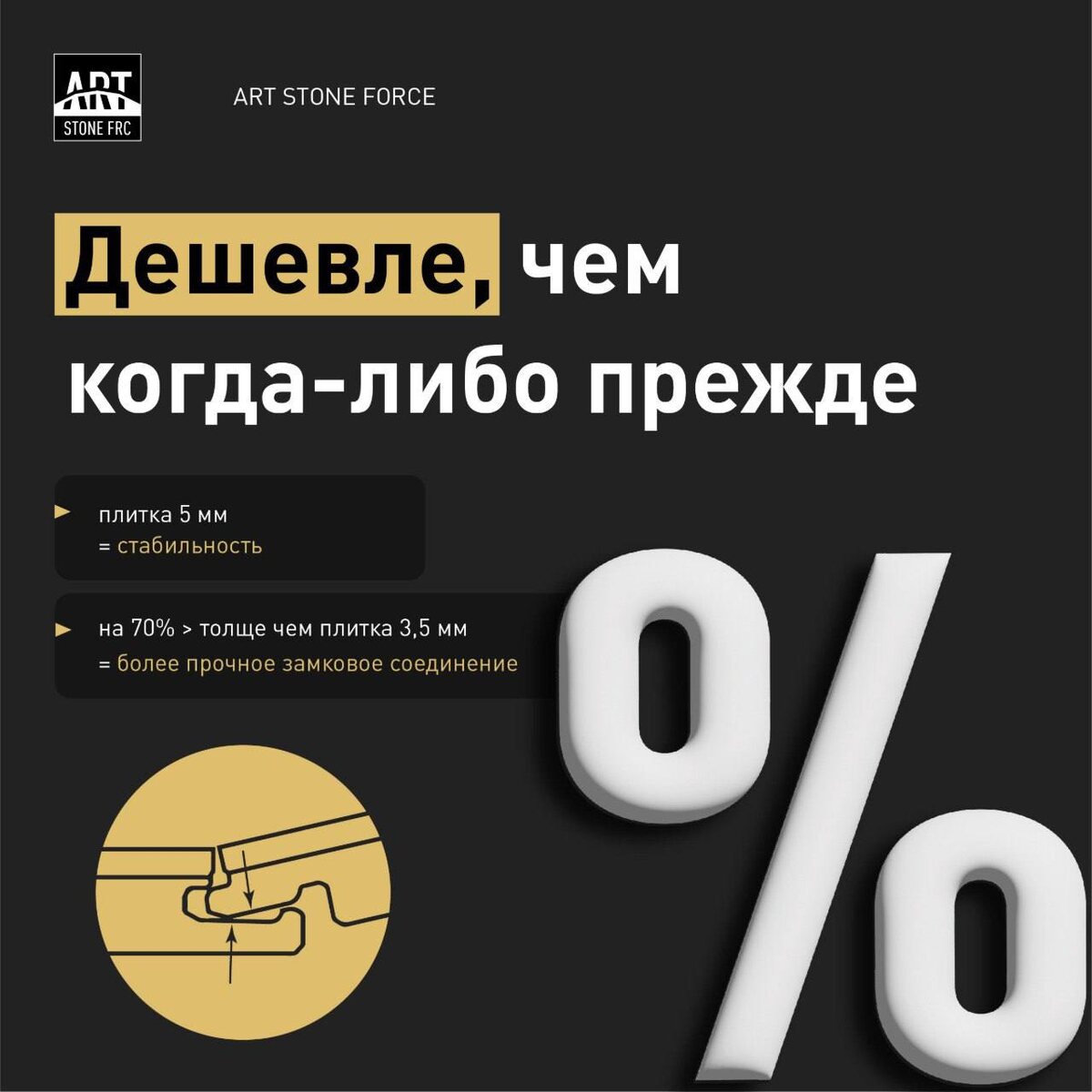 ✔ Толщина 5 мм – повышенная стабильность, меньше внутренних напряжений. ✔ Усиленный замок – выдерживает высокие нагрузки на изгиб и растяжение. ✔ Защитный слой 0,55 мм – устойчивость к истиранию (подходит для коммерческих помещений). ✔ Прокрашенная фаска – имитация натурального паркета. ✔ Тиснение в регистр – текстура, повторяющая натуральное дерево. ✔ Матовость (6-8% блеска) – естественный вид, меньше бликов. ART STONE FORCE 💪🏻