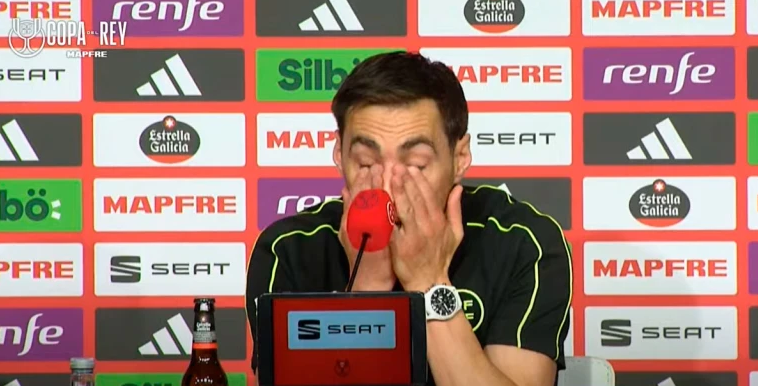 Ранее клубное телевидение мадридского клуба выпустило видео, в котором раскритиковало назначение Рикардо де Бургоса Бенгоэчеа на матч с «Барселоной» в финале Кубка Испании, указав на ряд ошибок судьи в пользу соперников «Реала». «Когда твоему ребенку в школе говорят, что его отец – «вор», и он приходит домой в слезах, это очень тяжело. Все, что я могу сделать, – это попытаться воспитать своего сына так, чтобы он знал: его отец – честный человек, который ошибается, как и любой спортсмен. Это очень тяжело, никому такого не пожелаешь. В тот день, когда я закончу, я хочу, чтобы мой сын гордился своим отцом, а также судейством, которое воспитывает в нас ценности. То, что сейчас переживают многие мои коллеги, – несправедливо. И это касается не только профессионального футбола, но и детско-юношеского. Каждый должен задуматься, в каком направлении мы хотим идти, чего мы хотим от спорта и футбола», – сказал Бенгоэчеа сквозь слезы. Фото: скриншот трансляции пресс-конференции Арбитр финала Кубка