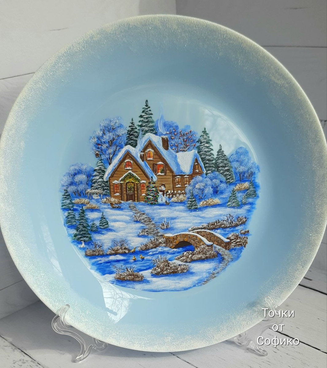 В Питере опять холодно, хорошо хоть снега нет😁, видимо поэтому я снег и рисую))) Новая декоративная тарелка с зимним сюжетом. Диаметр 25 см. Сделана на заказ. Возможен повтор. По всем вопросам в лс София Балушкина #декоративнаятарелка #новогоднийдекор #новогоднийподарок #точкиотсофико