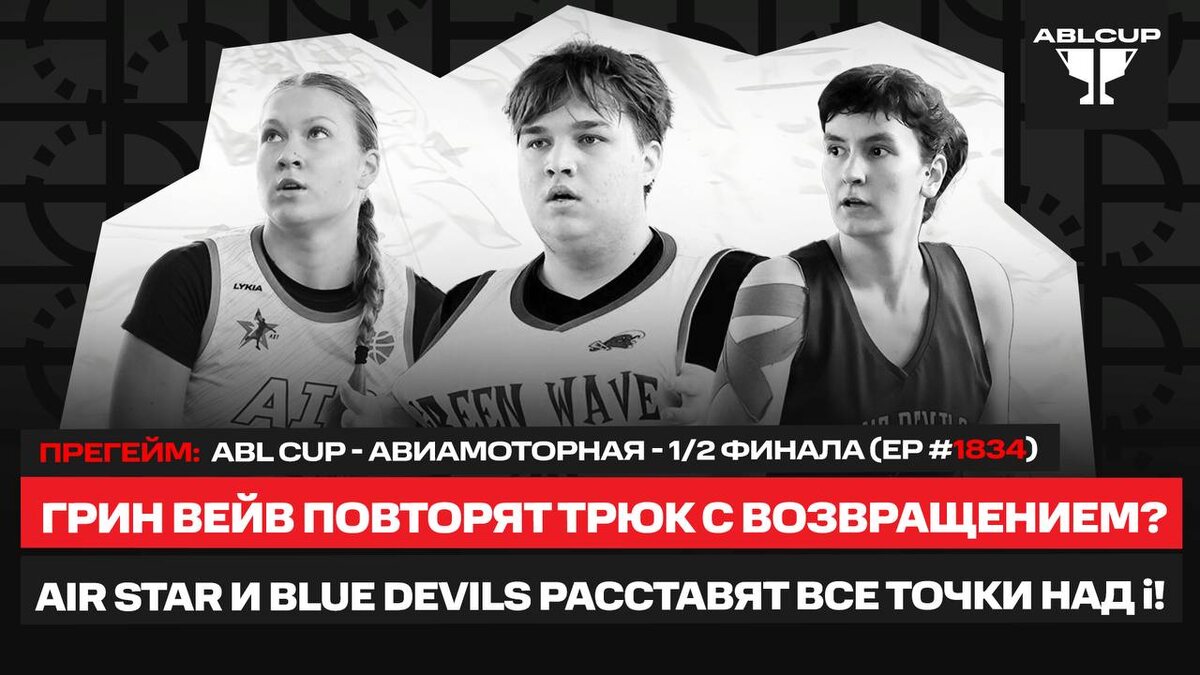 😱ПРЕГЕЙМ - ABL CUP - АВИАМОТОРНАЯ - 1/2 финала (1834 выпуск) 😜Грин Вейв повторят трюк с возвращением? 😐Air Star и Blue Devils расставят все точки над i 🥳19:15 😎https://vkvideo.ru/video-154666590_456246583