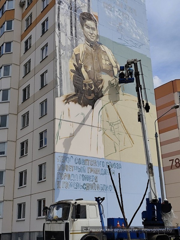 В Гомеле мурал, посвящённый легендарному лётчику, вскоре будет завершён