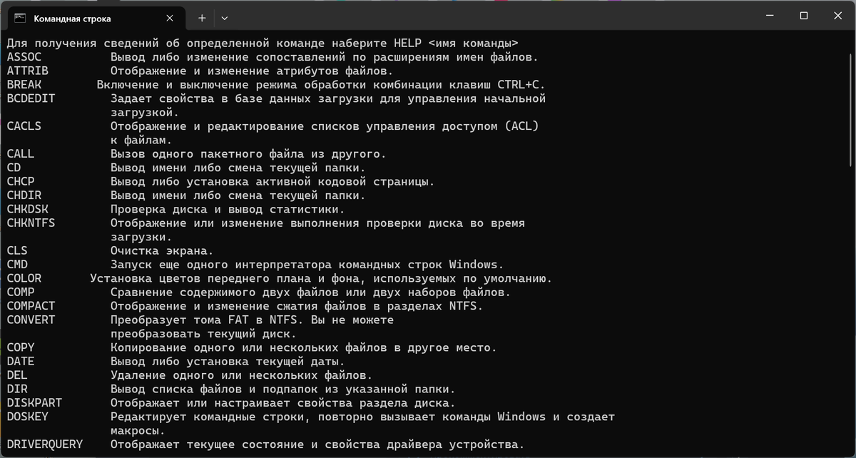 - Клавиши ↑ и ↓ — просмотр предыдущих команд.