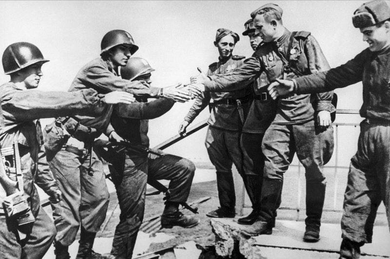 ВЕЧЕРНИЙ ЗВОН: эхо уходящего дня 25 апреля 1945 года в 15.30 на мосту через Эльбу в районе города Торгау встретились головной батальон 173-го гвардейского стрелкового полка 58-й гвардейской стрелковой дивизии и разведгруппа 69-й пехотной дивизии 5-го армейского корпуса 1-й американской армии. Оставил воспоминания гвардии лейтенант Александр Сильвашко, командир пулеметного взвода: «День был особый и запомнился мне на всю жизнь. Цвела сирень, было тепло и солнечно. Утренний туман на Эльбе рассеялся, огонь с противоположного берега прекратился. Все мы чувствовали, что война кончается. Мы приближались друг к другу по мосту. Встретились посередине. Пожали друг другу руки. Языка никто не знал, но солдатская смекалка помогла разобраться. Я увидел среди американцев офицера. Тот представился: «Уильям Робертсон». Я тоже представился: «Гвардии лейтенант Сильвашко». Я не знал английского, он не знал русского. Объяснялись жестами, но договорились, что идем докладывать командованию. Робертсон по