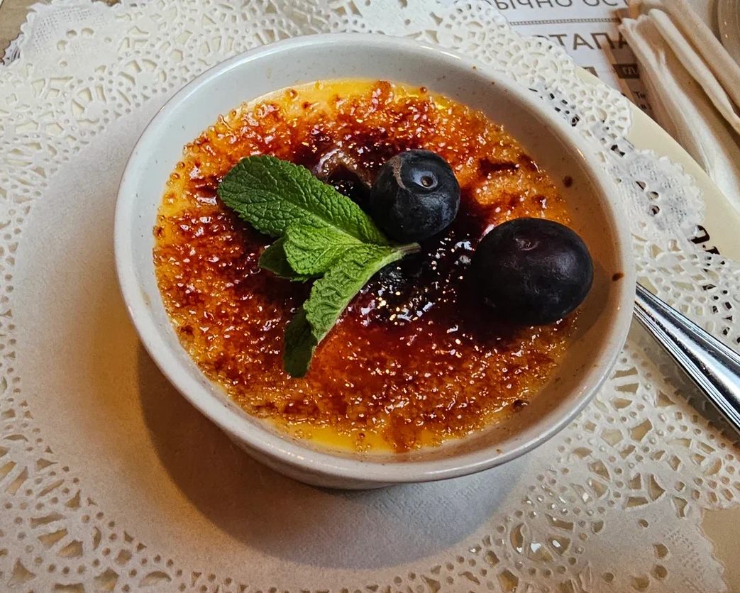 Это было наше первое личное знакомство (спасибо "Котоблогу"), до этого мы лишь виртуально общались. 🙂 Сперва была встреча с Татьяной. Мы с ней посидели в замечательном ресторанчике. Я опоздала (пробки в Москве) и она, в ожидании меня, заказала нам на свой вкус просто прекраснейшие блюда, которые я с удовольствием слопала, т.к. вдруг вспомнила, что была голодной. 😁 А уж десерт в конце обеда был особенно прекрасен, я даже фото сделала: Как сказала мне Таня по телефону ещё до нашей встречи, "мы с ней одной крови". И это оказалось правдой!!! 😻 Так хорошо и приятно было общаться. Эффектная, красивая, улыбчивая, с хорошим чувством юмора - мне было очень легко и интересно с ней. Обеденное время пролетело вмиг: шутили, смеялись, вкусно трапезничали - что может быть ещё лучше? 😁