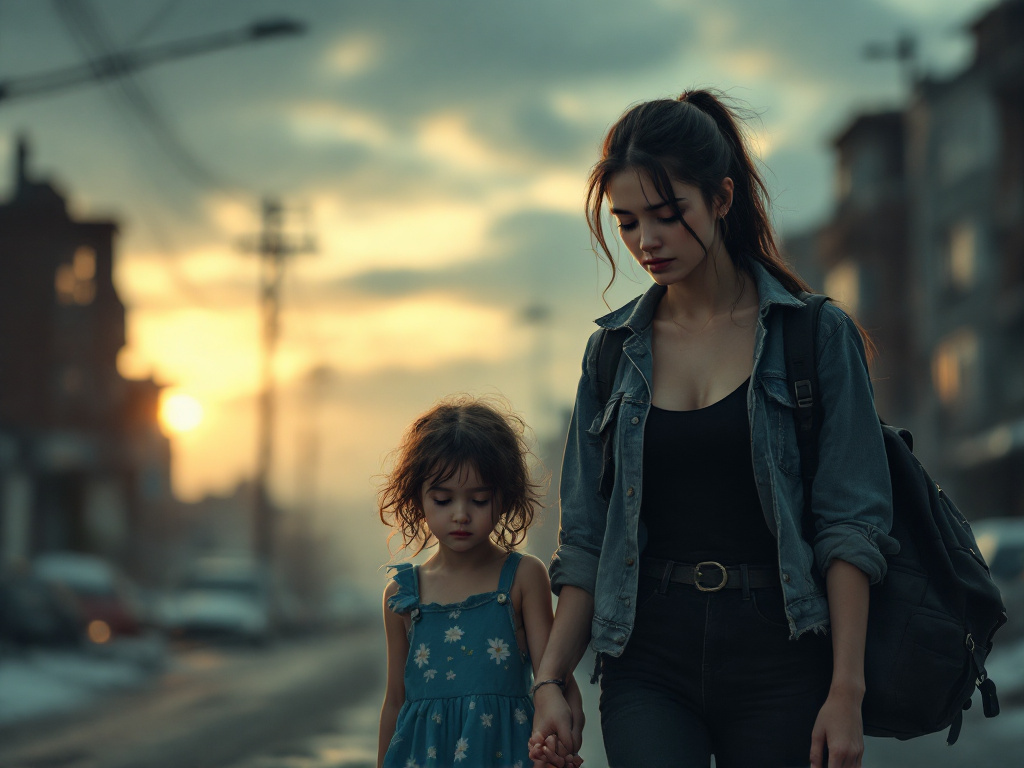 Она взяла дочь за руку, и та дрожала, как проволока под ветром. В углу телевизор, обтянутый пыльной тканью, мерцал синим светом, словно подмигивая призракам прошлого. Там, за экраном, лились речи о новых долларах, о президенте, о войне где-то далеко, но всё это казалось теперь ненужным шумом, фоном к их маленькой драме, разыгранной среди облупленных обоев.