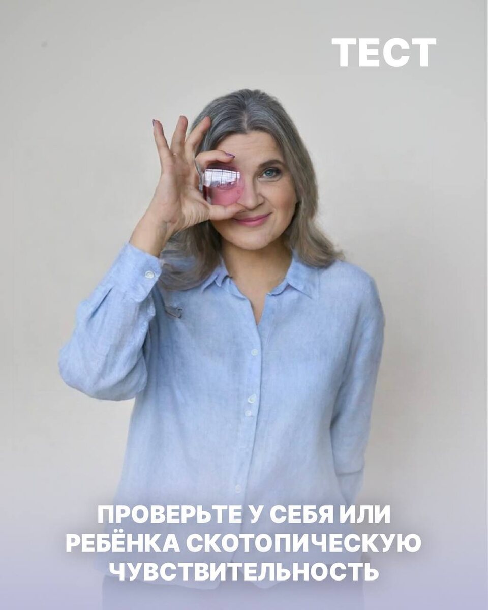 ❗️ТЕСТ: Проверьте у себя или ребёнка скотопическую чувствительность Ответьте на вопросы (ДА/НЕТ): 1️⃣ Когда вы читаете, бывает, что теряете строку, которую читали или упускаете слово? 2️⃣ Возникают ли у вас головные боли во время чтения? 3️⃣ Устаёте ли вы от чтения? 4️⃣ Бывают ли у вас мигрени? 5️⃣ Вызывают ли у вас глянцевые поверхности, узоры или блики желание зажмуриться? 6️⃣ У вас бывают проблемы с ориентацией в пространстве и координацией? Диагностика для детей с РАС: 1️⃣ Избегает ли ваш ребёнок зрительного контакта? 2️⃣ Бывает, что ваш ребёнок выключает свет или наоборот включает его в светлое время суток? 3️⃣ Есть ли у вашего ребёнка стереотипии, вязанные с глазами (смотрит в бок, прищуривается, смотрит сквозь пальцы, трясёт рукой или предметом рядом с глазами, смотрит сбоку на предметы…)? 4️⃣ Часто трёт руками глаза? 5️⃣ При изучении картинки ребёнок долго не может понять значение изображения? 6️⃣ Ребенок не любит предметы какого-то цвета или определенное освещение? Если хо