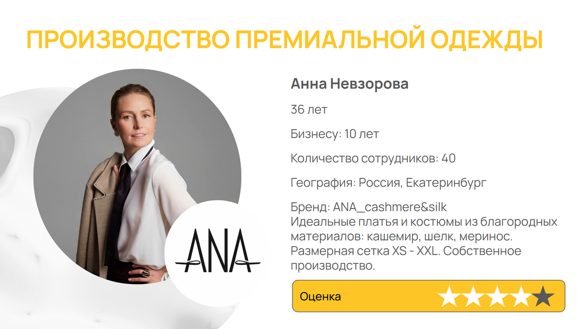 Изучать эту сложную, но безумно интересную бизнес-модель мы будем на примере бренда одежды, который создала участница моей "Пятёрки" – Анна Невзорова