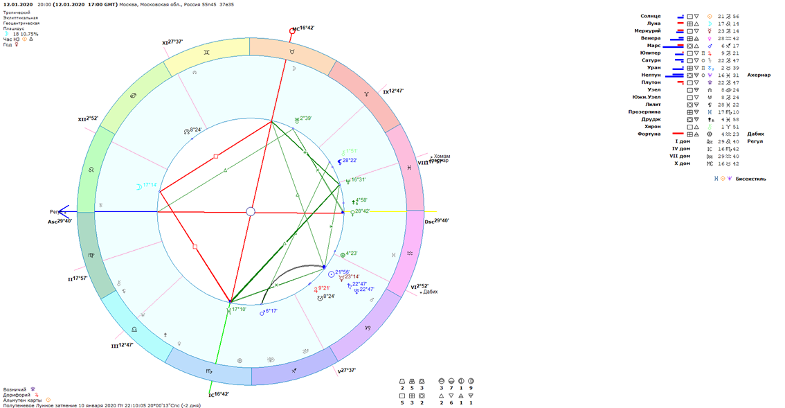 Один из важнейших планетарных циклов для человечества – это цикл Сатурна и Плутона. Рассматривают цикл от соединения планет до следующего соединения. По Сатурну цикл задействует структуры, чиновников, госаппарат, руководителей государств, границы, территориальное деление. Плутон отвечает за резкие изменения, военные действия, преображение, перемены в различных областях жизни. Проходит этот цикл примерно за 37-38 лет. Последнее соединение было 12-13 января 2020 года в Козероге. Предыдущее соединение было в 1982 году 8 ноября в Весах. Надо сказать, что этот цикл очень влияет на жизнь нашей страны. Поэтому так важно анализировать аспекты Сатурна и Плутона. Внутри цикла события приходят на аспектах этих планет (секстиль, трин, квадрат, оппозиция). Так что само соединение планет начинает цикл, дает яркое проявление на событийном уровне. Затем аспекты Сатурна и Плутона тоже добавляют событий на уровне государства. Если рассматривать аспекты этих планет за последние 43 года, то начнем мы с со