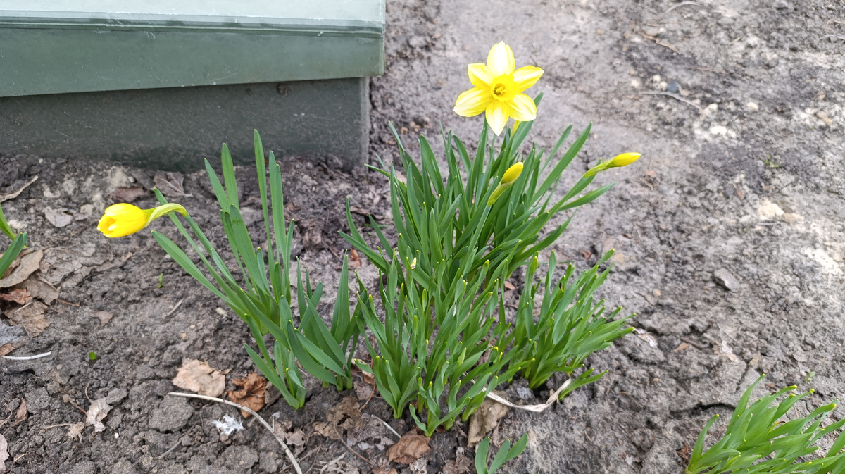 А у меня расцвел первый нарцисс. Как всегда - не в саду, а в палисаднике. Как всегда - рядом с септиком. Там теплее).