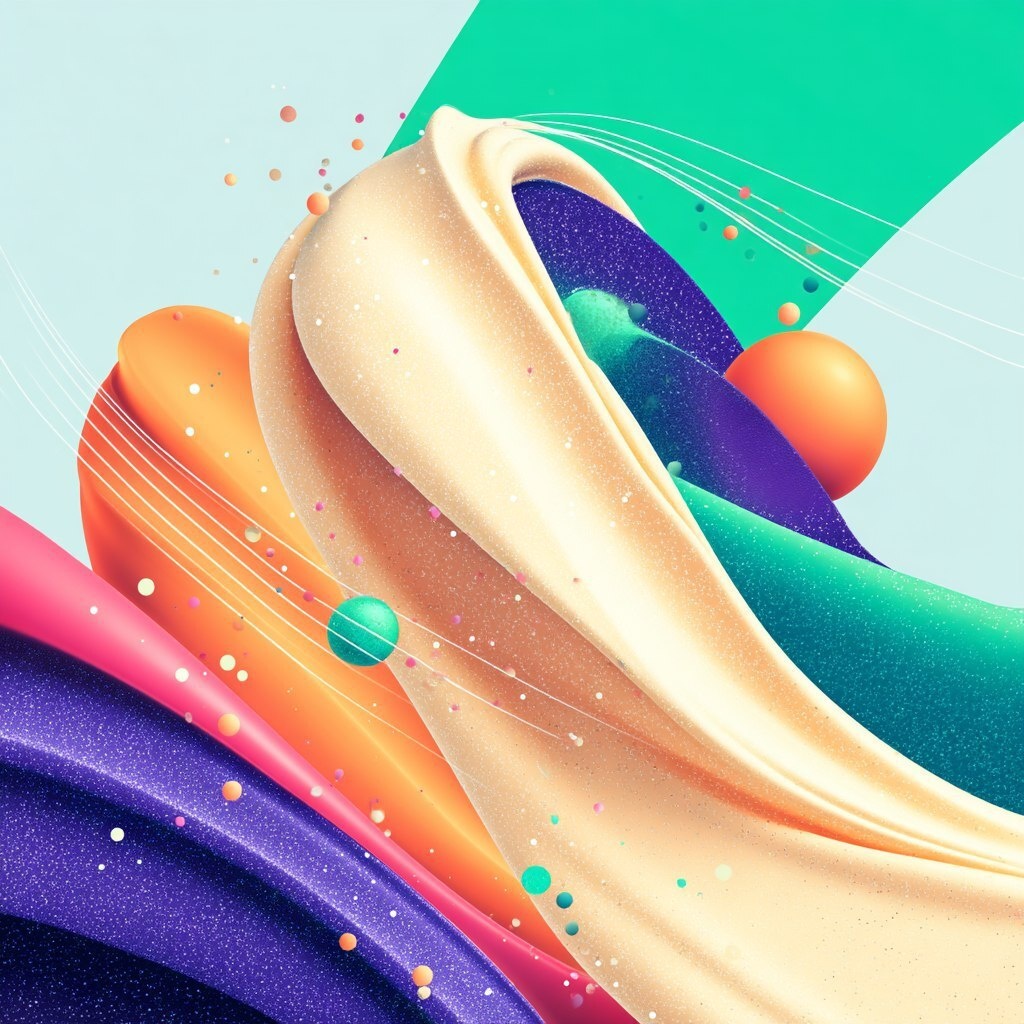 Создано на основе запроса: A vibrant abstract illustration featuring a creamy texture with light color and a velvety glow over a colored surface with darker shaded shapes, radiating glowing patterns symbolizing a brightening cream, surrounded by abstract swirling dots and velvety waves, vivid gradient colors in purple #A591FF and vivid magenta #EF557C, mixed with complementary hues like pacific blue #17ADCF, modern and dynamic composition, highly detailed, digital art style, soft glowing lighting, pop --- Автоперевод: Яркая абстрактная иллюстрация с кремовой текстурой со светлым цветом и бархатистым сиянием на цветной поверхности с более темными заштрихованными формами, излучающими светящимися узорами, символизирующими яркий крем, окруженный абстрактными закручивающимися точками и бархатистыми волнами, яркие градиенты в Purple #A59ff и vivida #ef557c, смешанный с комплементом № 17 -й, как # # # # # # # # # # # # # # # # # #. Классно вышло? 🤔 https://dzen.ru/id/65c0c65c86e4f837c27b24