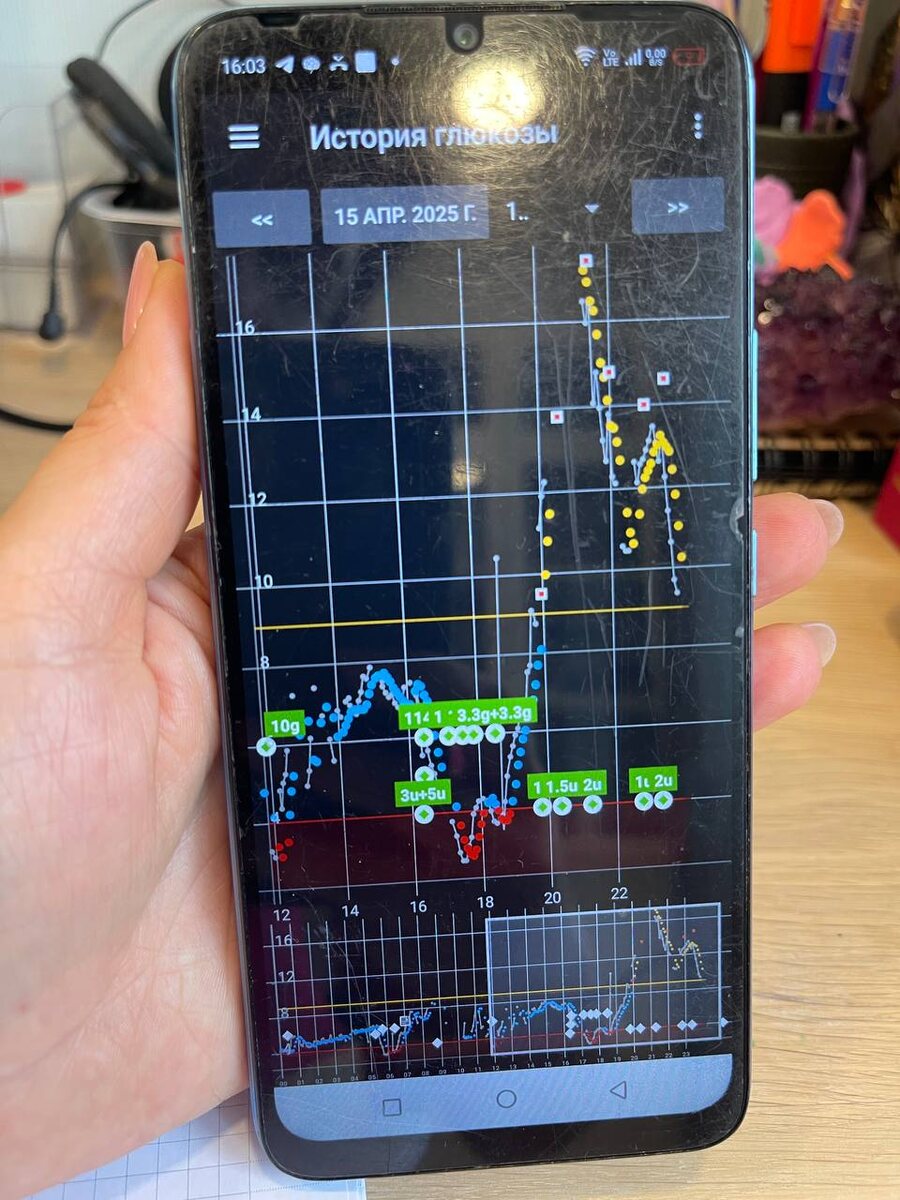 ДиаФакап ✈️Недавно мы с дочкой летали в Барнаул (Алтайский край) к близкими и команде. И захотелось мне дочку сводить в кафе, где раньше делали наивкуснейшие кексы с растопленным шоколадным сердце и мороженым(шоколадные фонданы) 🤤 И вот вечером мы с ней в кафе, съели по небольшому бургеру и фондану. Погуляли, прокатились на маршрутке. Легли спать. Все хорошо🥰 И через 2.5 ч началось… 😱😳 Таких сахаров, которые я не могу сколоть так долго, за всю историю диабета у нас не было (исключая первые вирусные болезни). Мои действия: Через 2.5 часа сахар поднялся до 8.5. Сколола 1 ед. Контроль через 30 минут (у нас Фиасп) Сахар вверх и быстро. Колю 1.5 ед Контроль через 40 мин Сахар также вверх. Колю 2 ед. Контроль через 30 мин. Пошел на снижение. Дальше в течение 4 часов контроль каждые 30 мин и подколки мЕньшими дозами. В итоге за ночь: 7,5 ед инсулина 17.5 ммоль максимальная точка Сахар выровняла только к утру🥲 Вот и вопрос. А оно мне реально так надо было? )))