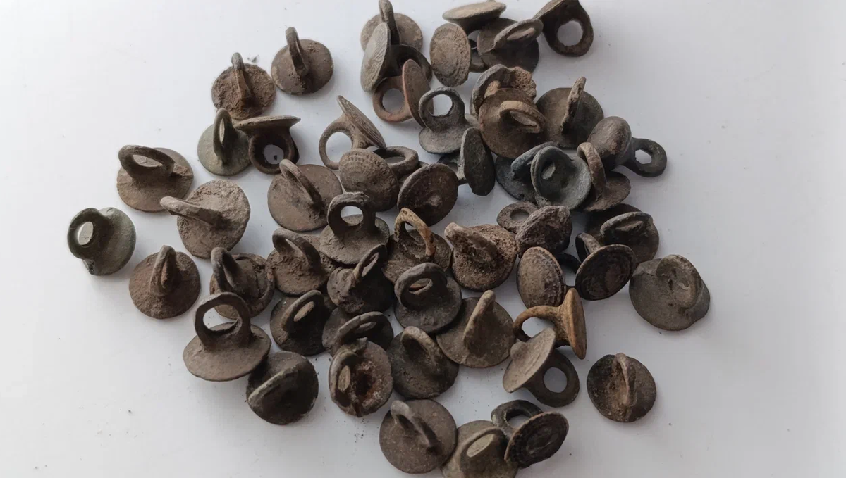 Что чаще всего из металлического терял человек? Я думаю, сразу же в голову придут такие варианты как - монетки, нательные крестики, металлические пуговицы, какие-то украшения. Буквально на дня на фотокадрах из одного музея видел стенд с пуговицами-гирьками. Удивило то, что пуговицы датированы музеем 13-16 веками, хотя край начал заселяться, в основном, в 18-19 веках. Как так? Причем на стенде были самые простые пуговицы, которые встречаются повсеместно - и в огородах, и на дорогах, и на берегах рек, и вообще везде, где жил и работал человек. Всё же лучше сказать, что эти пуговицы вполне использовались людьми до самого начала 20-го века. Тем более, что изготавливались они при помощи простейших форм и элементарным технологиям. У меня в закромах много самых обычных и самых распространенных пуговиц-гирек. Вот такие: Невидалью они не являются, так как изготавливались, скорее всего, в "домашних условиях". Если поискать в Интернете материалы на тему "пуговиц-гирек", то можно увидеть, что
