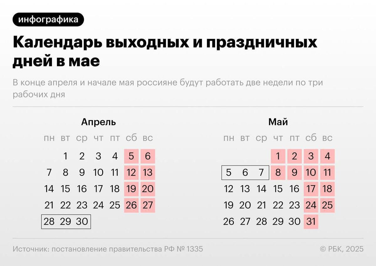 🗓 Рекордно короткие рабочие недели ждут нас в конце апреля — начале мая