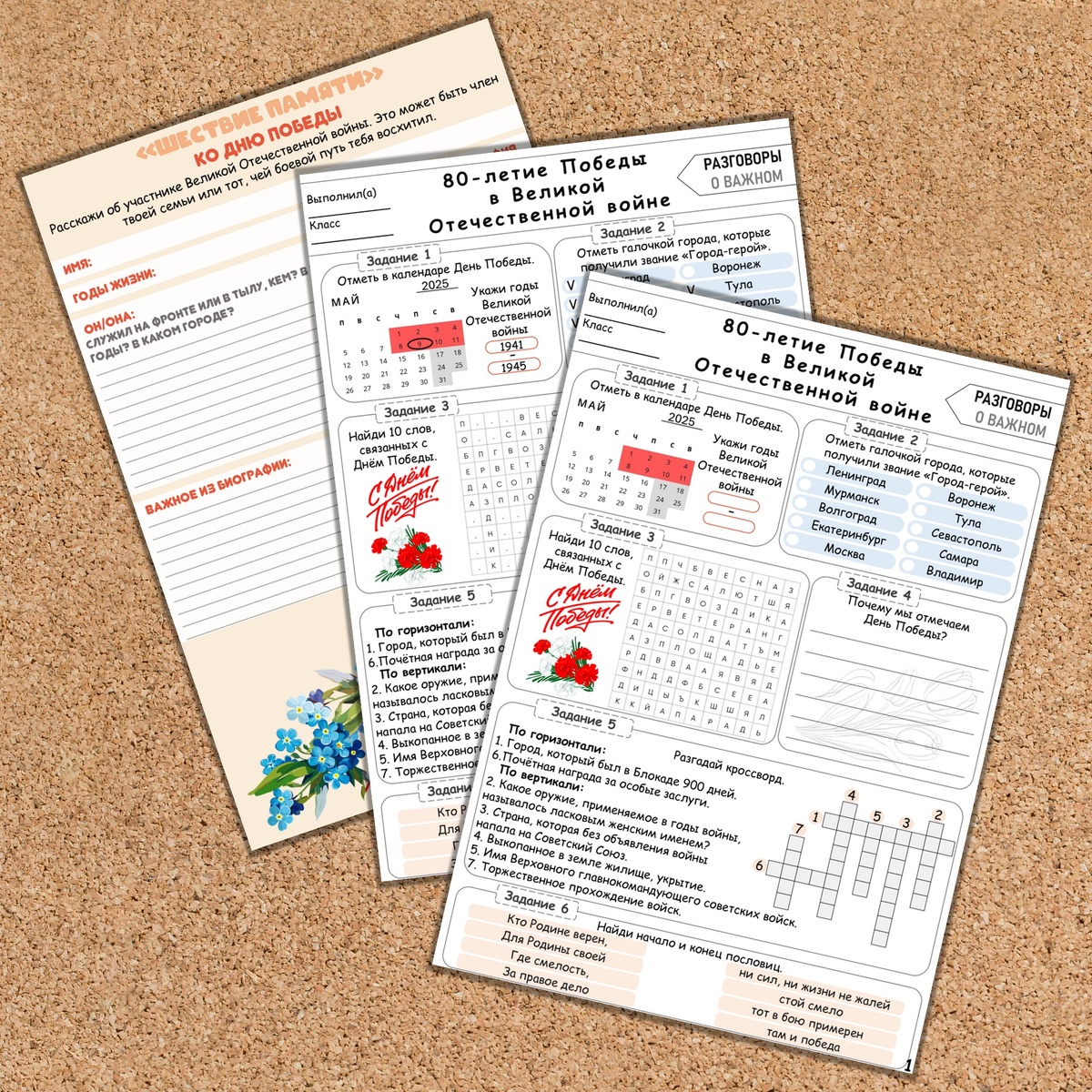 Рабочий лист «80-летие Победы в Великой Отечественной войне» для "Разговоров о важном", которые пройдут 7 мая 2025 года. Плюс проект "Шествие памяти". Рабочие листы включают в себя 6 разноплановых заданий и ответы на задания для учителя. Рабочий лист универсален и подойдет для проведения тематических классных часов и внеурочных занятий. Файл в формате PDF и PPTX. Есть возможность редактирования. Подходит для цветной и черно-белой печати.