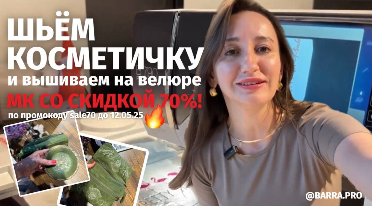 Час пролетел просто незаметно, спасибо, что провели его с нами 🥰 Получилось очень душевно и атмосферно, поучаствовали просто все наши сотрудники)) Вышивали с Ирой на BERNINA 790 PRO на ворсовой ткани. Запялили, поделились тонкостями и нюансами работы с этим материалом. 📺 Запись эфира смотрите здесь ➡️ https://vk.com/wall-59918662_16126 А теперь про косметичку и сам мастер-класс: ✅ Пошаговые видеоуроки отличного качества на нашей любимой и удобной учебной площадке GetCourse. Всё профессионально снято и разработано, полноценный курс! Справится даже новичок. ✅ Печатные выкройки косметички и кругляша, строить ничего не нужно, мы уже сделали это за вас 👌🏼 ✅ Конспекты, которые останутся в бессрочном доступе, ✅ Доступ к материалам - 1 год. Такого у нас ещё не было 😎 За это время успеете сшить много разных косметичек для себя, подруг и даже на продажу. ⭐️ И самое приятное: До 12 мая будет действовать промокод «sale70»! А это -70% от цены: 960₽ вместо 3 200₽ 🔥 Купить по ссылке ➡️ htt
