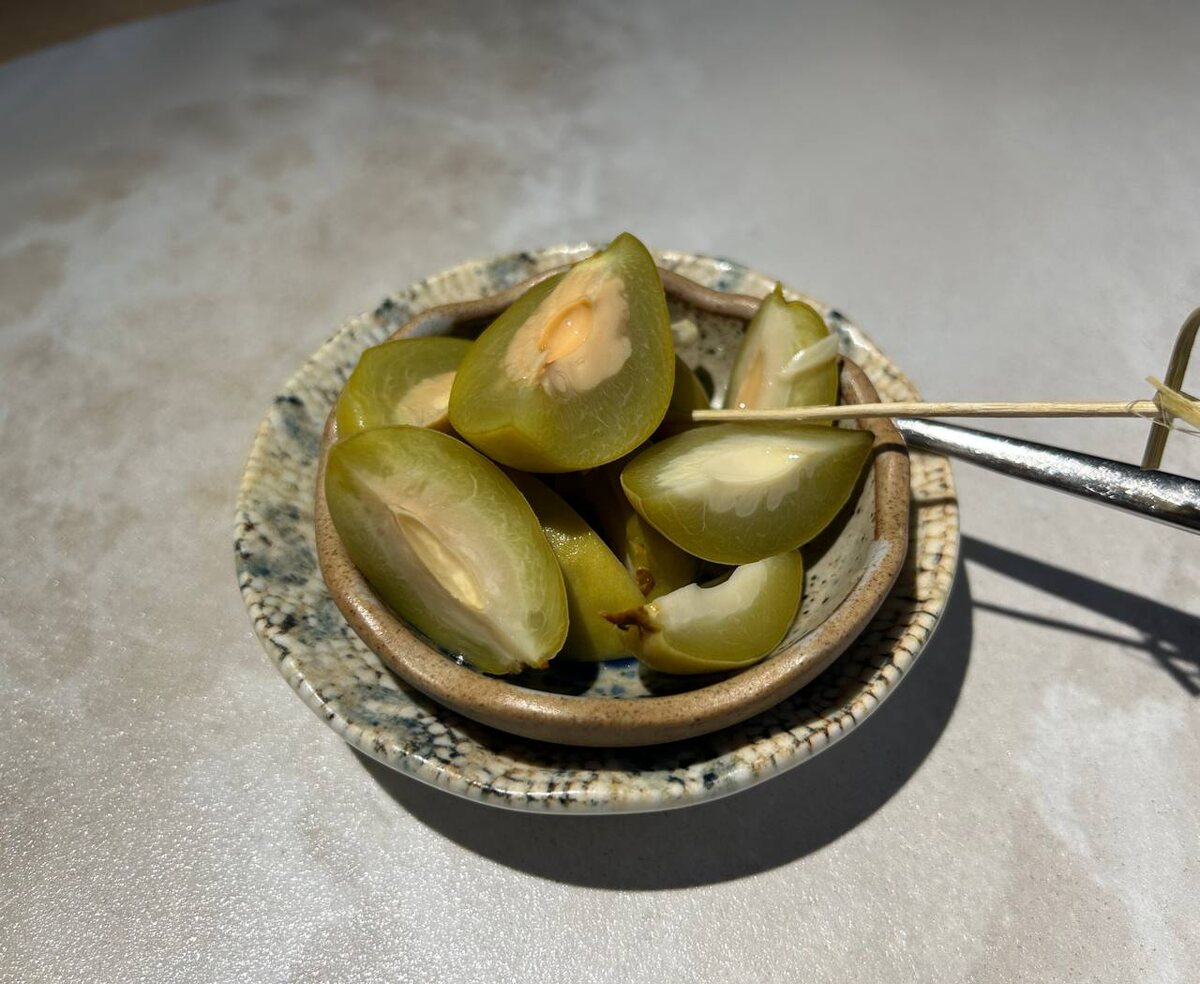 Попробовал в Геленджике маринованный молодой миндаль. Как будто еще чуть раньше надо было его с ветки снимать, косточки уже слишком твердые. Но вкусно, эдакий гибрид оливки и цуката. 🧂 @saltmagazine