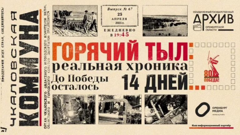 Проект «Горячий тыл: реальная хроника» подготовлен архивной службой Оренбургской области и посвящен 80-летию Победы в Великой Отечественной войне. Оренбург Медиа — информационный партнер проекта.